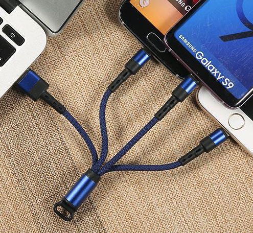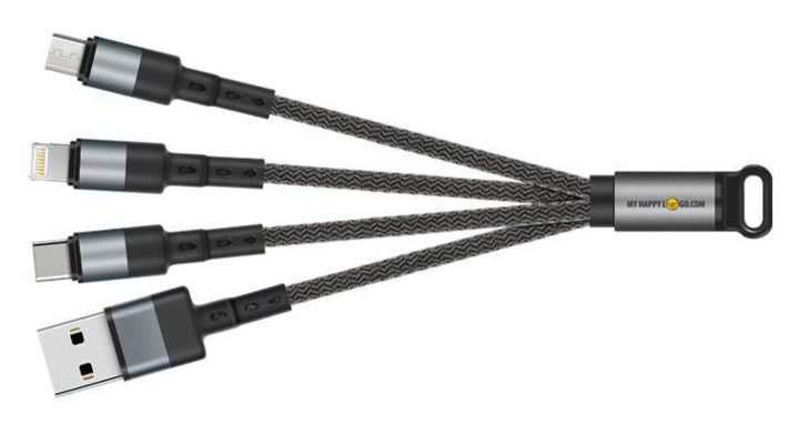 USB-latauskaapeli 3+1, joka on yhteensopiva kaikkien Appple lighting-, Micro USB- tai USB Type C - laitteiden kanssa. Pienen koon ansiosta on kätevä pitää taskussa aina mukana.